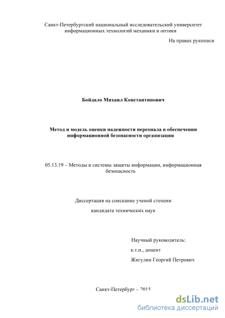 Предметом исследования являются методы и модели оценки надежности персонала организации в интересах обеспечения её информационной безопасности.
