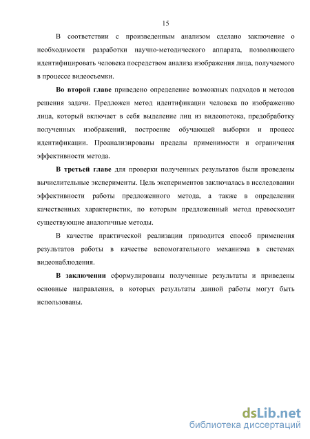 Для достижения поставленной цели в работе решаются следующие частные задачи: 1. Провести анализ систем разграничения доступа, изучить существующие подходы к идентификации пользователя, а также требования к процедуре идентификации и выявить перспективные направления. 2. Предложить новый метод построения обучающей выборки, а также предложить компактный способ хранения этих данных. 3. Изучить возможность использования математического аппарата иммунокомпьютинга в целях идентификации человека по изображению лица. 4. Предложить новый метод идентификации, обеспечивающий наиболее высокие показатели качества. 5. Провести вычислительный эксперимент. В соответствии с заявленными целями и задачами работы объектом исследования является видеоаналитика в системах разграничения доступа, а предметом исследования - методы идентификации субъектов по изображению лица. На защиту выносятся следующие основные результаты: 1. Методика формирования и обработки обучающей выборки для идентификации человека по изображению лица, суть которой заключается в работе с набором неструктурированных данных и использовании различных методов предобработки исходных видеоизображений в заданной последовательности [85-86]. 2. Метод идентификации, позволяющий обеспечить большую, по сравнению с известными методами, степень достоверности идентификации человека по изображению лица [85-86]. 3. Способ использования предлагаемого метода в системах разграничения доступа на основе видеонаблюдения [85-86].