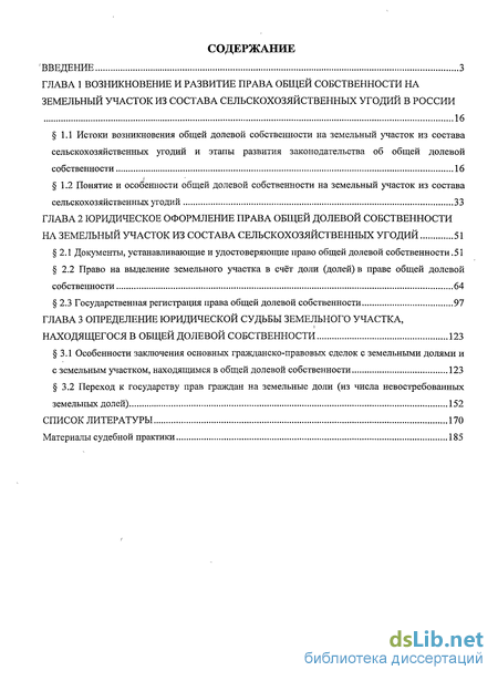Глава 1 Возникновение и развитие права общей собственности на земельный участок из состава сельскохозяйственных угодий в России 16