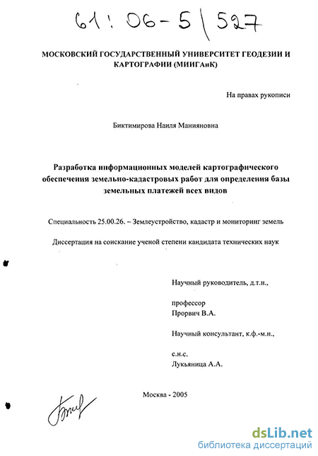 современных информационных моделей картографического обеспечения всего комплекса земельно-кадастровых работ.