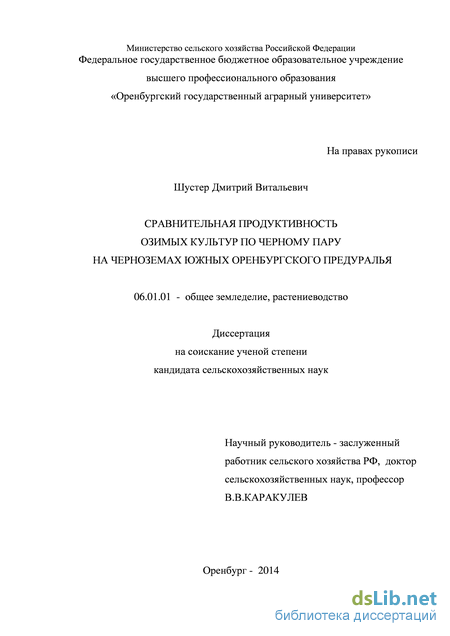 Поэтому поставленная в диссертации цель изучить широкий набор озимых культур в паровых звеньях севооборота является актуальной.