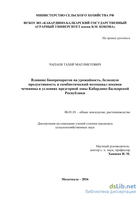 потенциально заложенных возможностей симбиотического аппарата, повышению урожайности и качества семян чечевицы на выщелоченных черноземах предгорной зоны Кабардино-Балкарии.