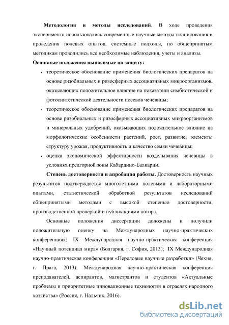 Степень достоверности и апробация работы. Достоверность научных результатов подтверждается многолетними полевыми и лабораторными опытами, статистической обработкой результатов исследований общепринятыми методами с высокой степенью достоверности, производственной проверкой и публикациями автора.