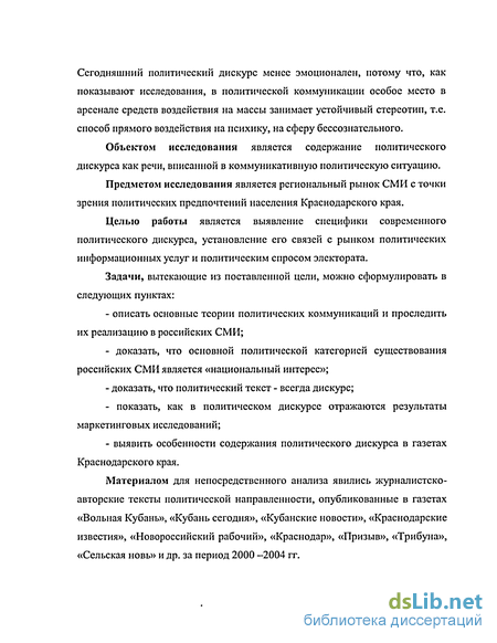 Материалом для непосредственного анализа явились журналистско-авторские тексты политической направленности, опубликованные в газетах «Вольная Кубань», «Кубань сегодня», «Кубанские новости», «Краснодарские известия», «Новороссийский рабочий», «Краснодар», «Призыв», «Трибуна», «Сельская новь» и др. за период 2000 -2004 гг.