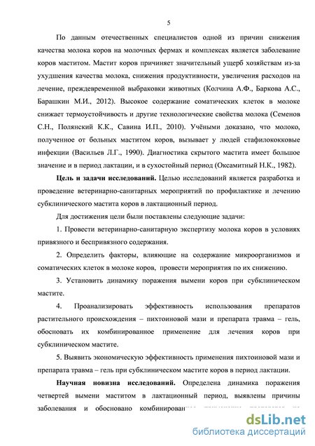 Введение. Во введении диссертационной работы показаны социальная значимость безопасности и качества молока коров, профилактики и лечения животных и актуальность выбранной темы.