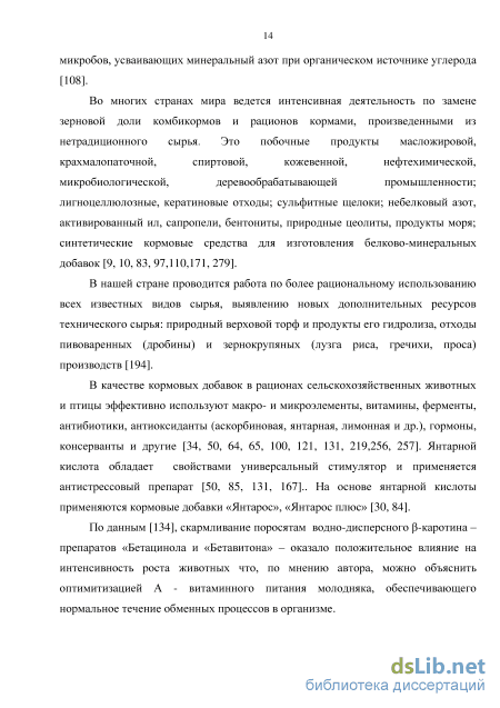В конечном итоге это оказывает влияние на уровень синтеза микробного белка и его вклада в аминокислотный баланс рациона. Отсутствие контроля за указанными качественными показателями протеина кормов может привести к дисбалансу аминокислот в рационе и, как следствие, к перерасходу кормового протеина на продукцию, а в ряде случаев и к снижению продуктивности животных. Это явилось основной причиной необходимости разработки новой системы нормирования протеинового питания жвачных животных в том числе и лактирующих коров. Сохранение репродуктивной функции организма, высокая продуктивность животных, результативное применение кормов сейчас немыслимы при отсутствии введения в рационы разных концентратных добавок, которые обеспечивают нужную степень биологически полноценного кормления [185, 187, 189]. Наследственность, порода, физиологическое состояние, организация полноценного, рационального кормления являются ключевыми факторами будущего повышения молочной продуктивности коров [61, 62, 207] Однако, увеличение производства кормов и расширение их ассортимента может быть достигнуто лишь при условии изыскания новых источников сырья [106]. Установлено [59], введение в рацион свинок комплексного препарата, получаемого на основе солодовых ростков, оказывает положительное влияние на усвояемость макро- и микроэлементов, способствует повышению резистентности организма. В настоящее время, наряду с различными кормовыми добавками, [132] особую актуальность представляет применение нетрадиционных источников биологически активных веществ - сапропелей, бентонитов, цеолитов, торфа и др. [12, 87, 107, 183, 190, 243, 250, 266, 270, 271, 272].