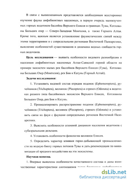 Несмотря на это, Тува и Северо-Западная Монголия изучены в гидробиологическом аспекте очень слабо, особенно это касается экосистем водных потоков. Имеющиеся сведения для Верхнего Енисея, протекающего по территории Тувы, относятся лишь к крупным таксонам беспозвоночных, являющихся кормовой базой рыб (Грезе, 1957; Гундризер, Попков и др., 1986). В связи с этим представляется необходимым всестороннее изучение формирования фауны, ее связи с сопредельными территориями, особенностей функционирования и динамики водных сообществ горных водотоков рассматриваемой территории, а также выявления их биоразнообразия.