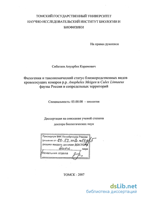 Апробация результатов. Материалы работы представлены: на конференции «Проблемы экологии Томской области», Томск, апрель 1992 г.; на региональной научно-практической конференции (Томск, 1994); на I съезде ВОГиС, декабрь, 1994, г. Саратов; на 10 th. European SOVE Meeting, (Strasbourg, 1996); на XX International Congress of Entomology (Firence, Italy, 1996); на I научной конференции Новосибирского отделения Паразитологического общества РАН «Паразиты и паразитарные болезни в Западной Сибири» (Новосибирск. 1996); на II En Gebi Conference on bacterial control of agricultural insect pests and vectors of human diseases (Shoresh, Israel, 1996); на I международном симпозиуме «Эволюция жизни на земле» (Томск, 1997); на XI энтомологическом съезде (Санкт-Петербург, 1997); на конференции «Проблемы эволюционной цитогенетики, селекции и интродукции» (Томск, 1997); на VI Всероссийском диптерологическом симпозиуме «Место и роль двукрылых насекомых в экосистемах» (Санкт-Петербург, 1997); на научной конференции «Проблемы энтомологии в России» научной конференции «Биологическое разнообразие животных Сибири» (Томск, 1998); на I Международной конференции «Биоразнообразие и динамика экосистем Северной Евразии» (Новосибирск, 2000); на I, II и III Международных конференциях «Проблема вида и видообразование», Томск (2000, 2001, 2004); на I Международной Школе-семинаре «Кровососущие насекомые - переносчики трансмиссивных заболеваний и проблемы генетической безопасности» (Москва, 2002); на XII Съезде Русского энтомологического общества (2002); на III Съезде Вавиловского общества генетиков и селекционеров, Москва (2004); VTI Межрегиональном совещании энтомологов Сибири и Дальнего Востока «Энтомологические исследования в Северной Азии» (Новосибирск, 2006); на I Всероссийском совещании по кровососущим насекомым (Санкт-Петербург, 2006); XIII съезде Русского энтомологического общества (Краснодар, 2007).