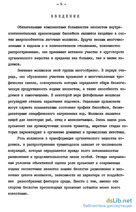 Изучение распределения массовых видов пульмонат в водоемах центральных районов Европейской части СССР в зависимости от гидрологического и гидрохимического режимов, фитоценотичес-кой обстановки и от особенностей физиологии моллюсков.
