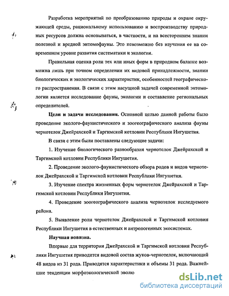 ведение эколого-фаунистического и зоогеографического анализа фауны чер-нотелокДжейрахской и Таргимской котловин Республики Ингушетии. В связи с этим были поставлены следующие задачи: