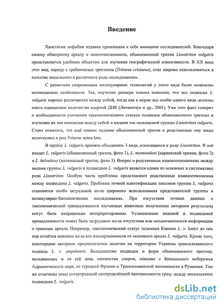 Глава 2. Основные проблемы систематики тритонов группы Lissotriton vulgaris 10